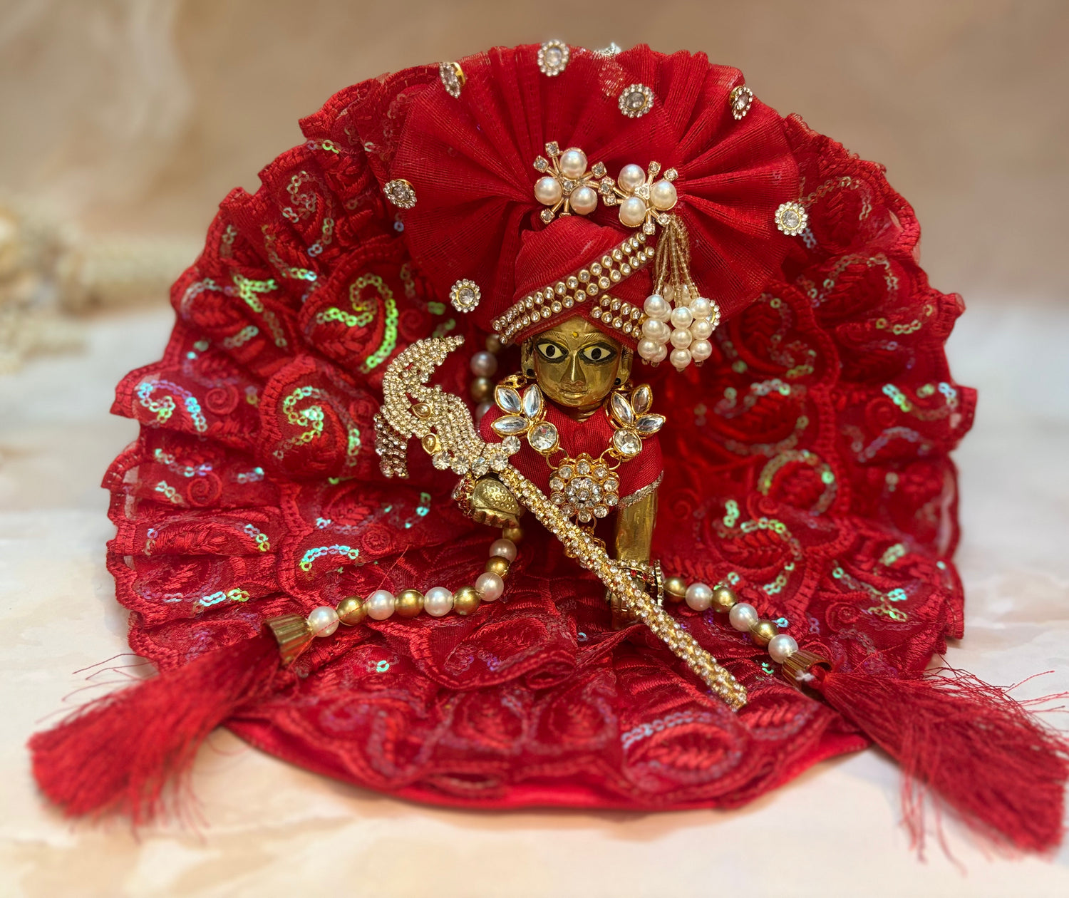 Luxe - Golden Red Leaf Hand Embroidered Laddu Gopal Dress (5 piece set)