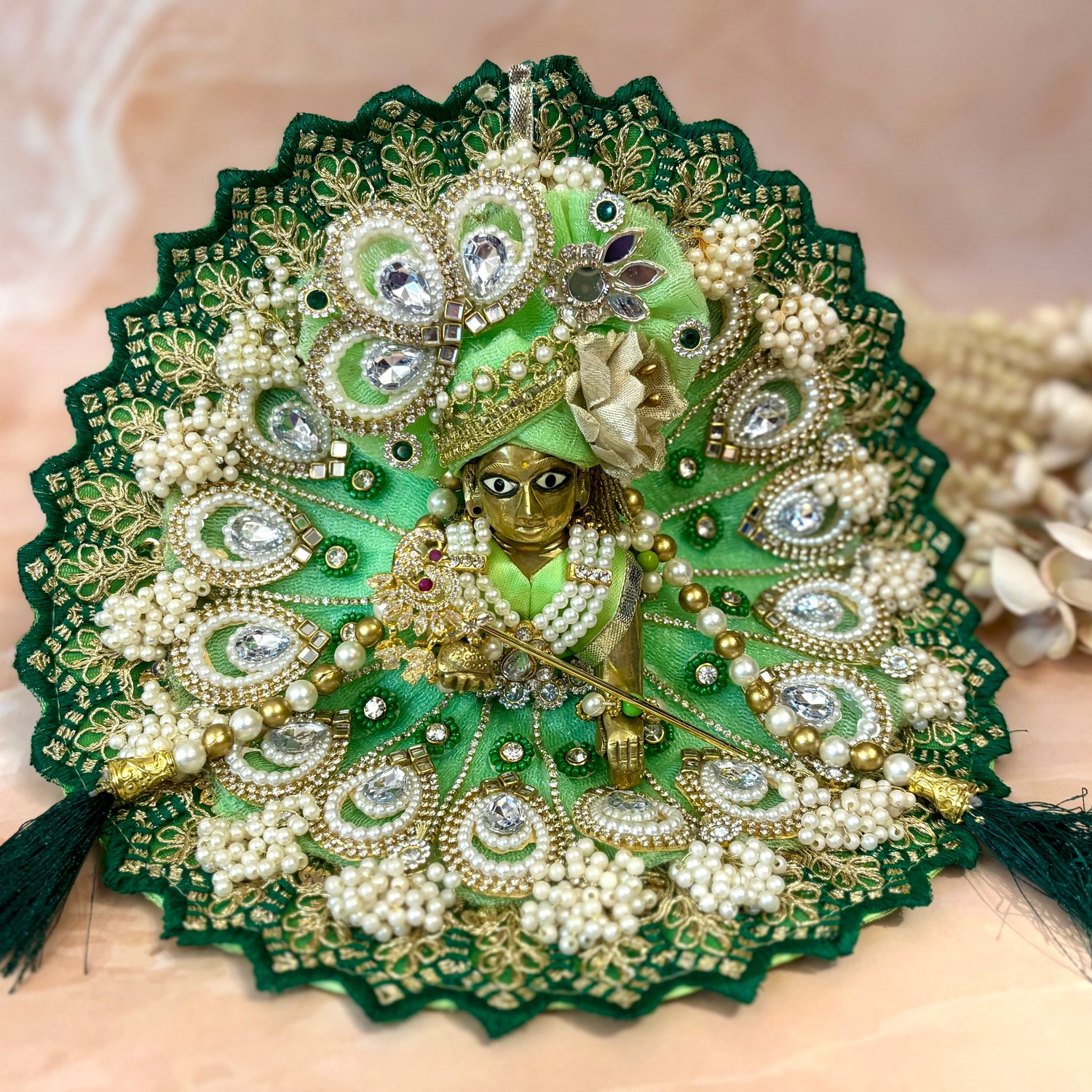 Green Motif with Pearls Laddu Gopal Dress
