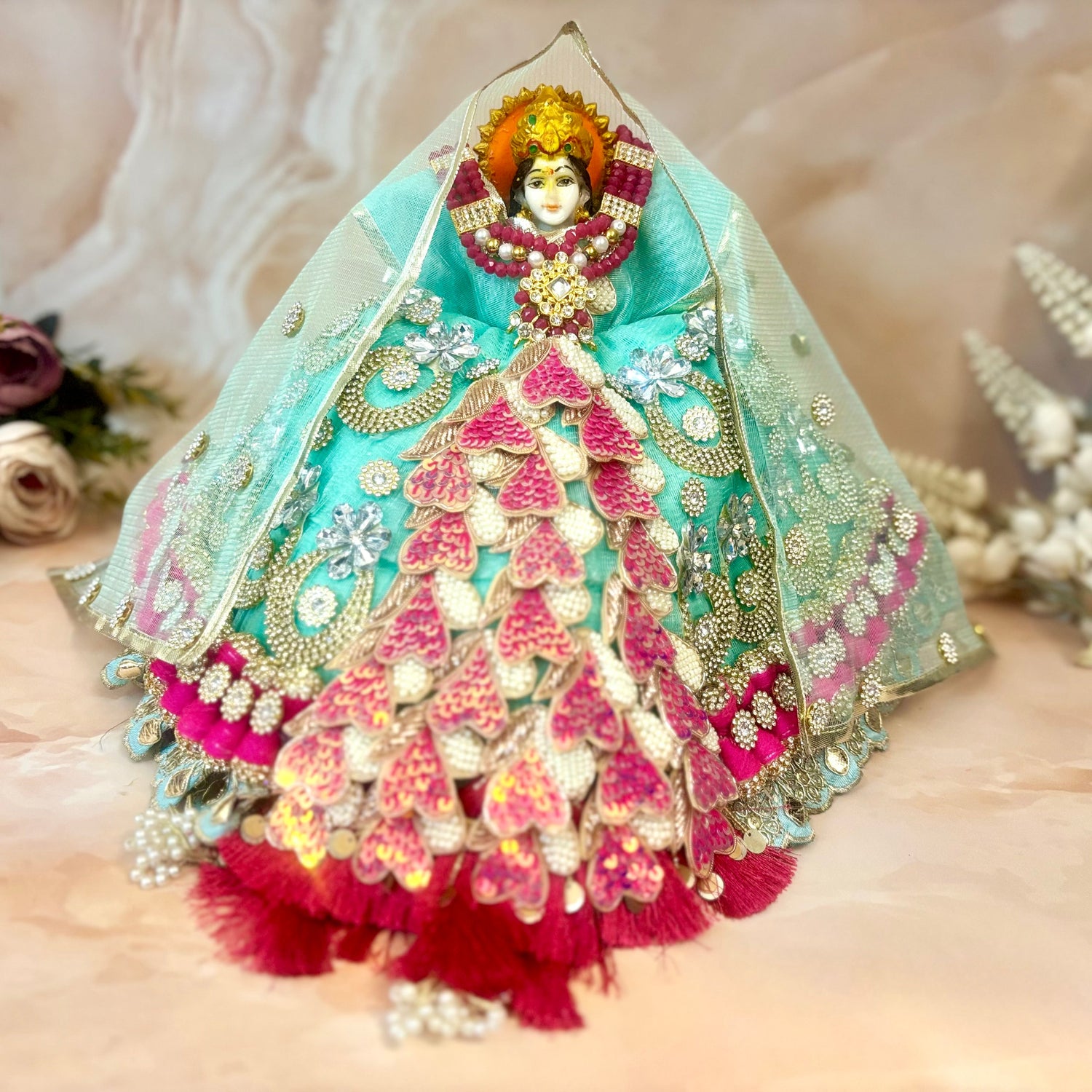 RK / Yugal Sarkar/ Laxmi ji & Ganesh ji Set Green Pearl Lehenga & Dhoti - 7 piece set