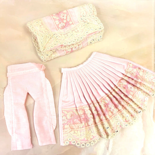 Green & Pink Flower Woollen Mata Rani Lehenga, Choli & Patka