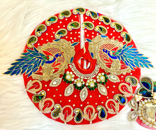 Luxe - Golden Red Leaf Hand Embroidered Laddu Gopal Dress (5 piece set)