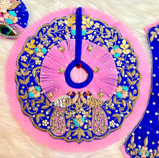 Luxe - Blue & Pink Peacock Hand Embroidered Laddu Gopal Dress (4 piece set)