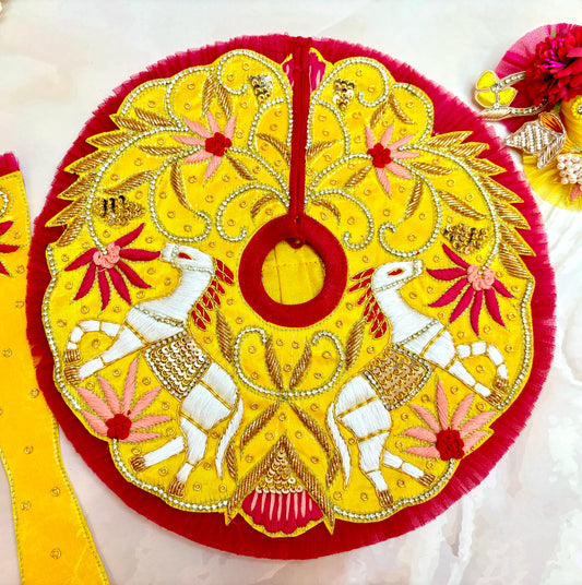 Luxe- Haathi Godha Palki - Yellow & Pink Hand embroidered Laddu Gopal Dress (4 piece set)