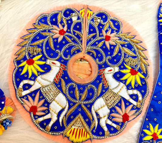Luxe- Haathi Godha Palki Blue & Peach Hand Embroidered Laddu Gopal Dress (4 piece set)