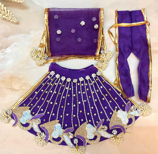 Mata Rani Dark Purple Lehenga, choli & Duppatta- 3 piece set