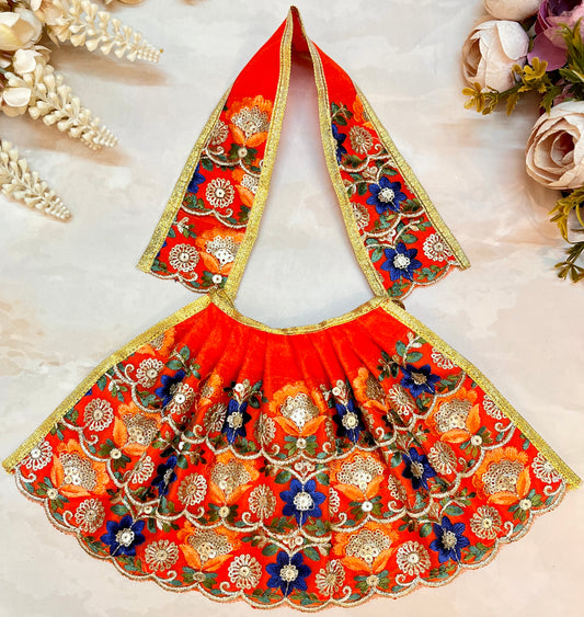 Mata Rani Lehenga & Patka ( 2 piece set) - Orange Flower