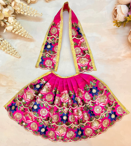 Mata Rani Lehenga & Patka ( 2 piece set) - Pink Flower