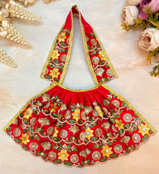 Mata Rani Lehenga & Patka ( 2 piece set) - Red Flower