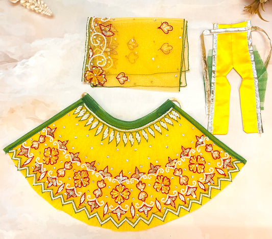 RK / Yugal Sarkar/ Laxmi ji & Ganesh ji Set Yellow Pearl Lehenga & Dhoti - 6 piece set