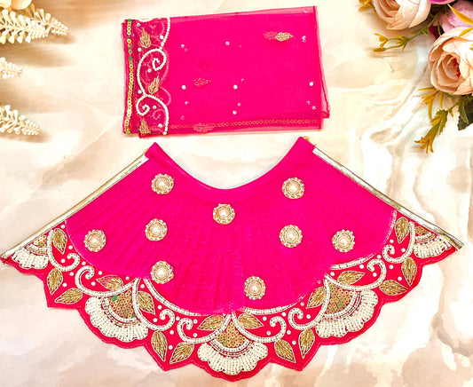 RK / Yugal Sarkar/ Laxmi ji & Ganesh ji Set Pink Rose Lehenga & Dhoti - 7 piece set