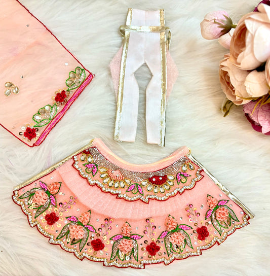 Luxe - Mata Rani Pastel Peach Lotus Lehenga, choli & Duppatta- 3 piece set