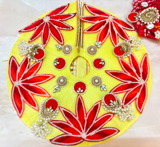 Luxe - Yellow Pearl Hand Embroidered Radha Rani Dress (4 piece set)
