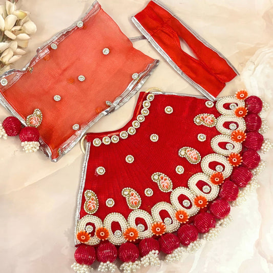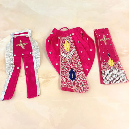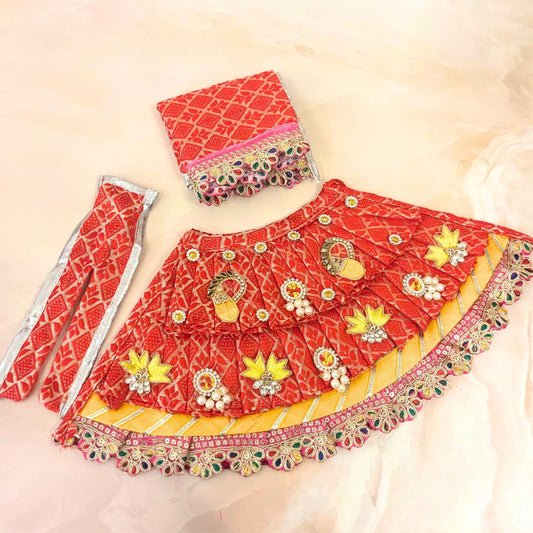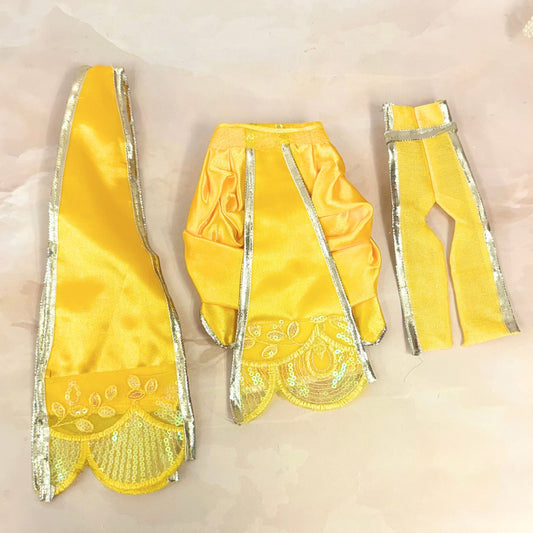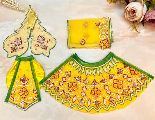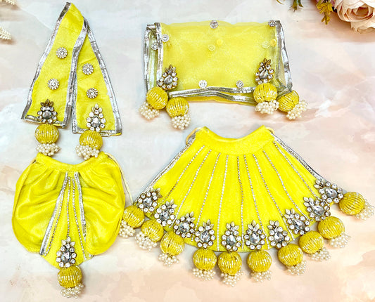 RK / Yugal Sarkar/ Laxmi ji & Ganesh ji Set Yellow Pearl Lehenga & Dhoti - 6 piece set
