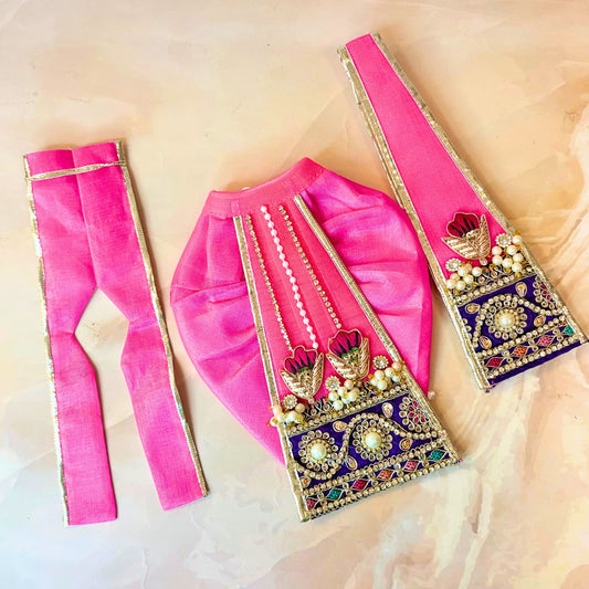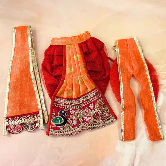 Luxe - RK / Yugal Sarkar/ Laxmi ji & Ganesh ji Set Peach Lotus Lehenga & Dhoti - 6 piece set