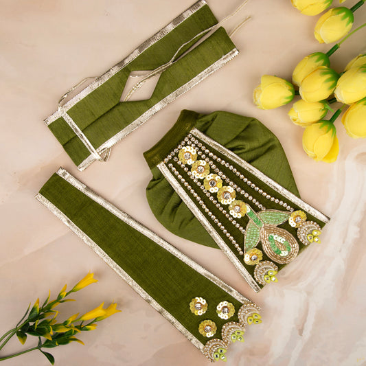 RK / Yugal Sarkar/ Laxmi ji & Ganesh ji Set Green Pearl Lehenga & Dhoti - 7 piece set