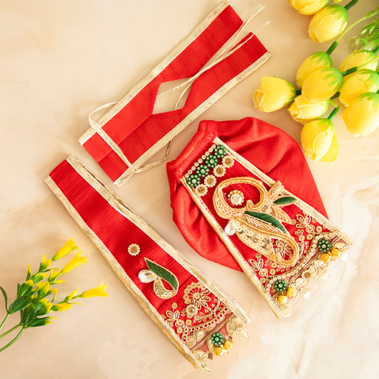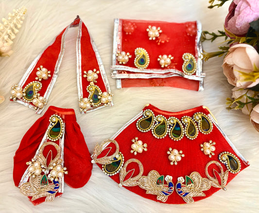 RK / Yugal Sarkar/ Laxmi ji & Ganesh ji Set Red Peacock Lehenga & Dhoti - 7 piece set