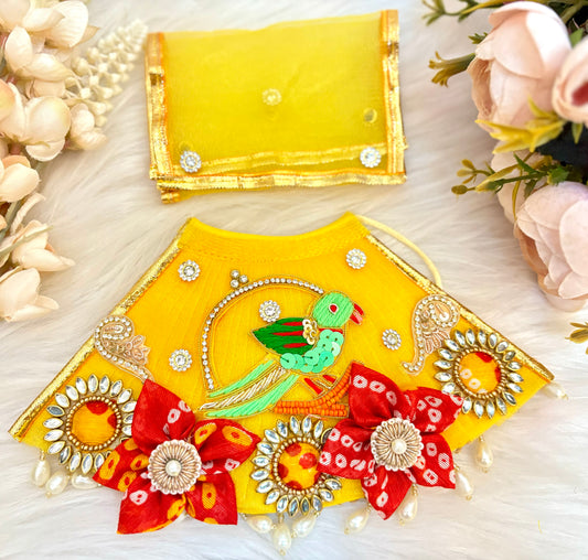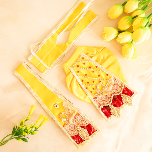 RK / Yugal Sarkar/ Laxmi ji & Ganesh ji Set Yellow Parrot Lehenga & Dhoti - 6 piece set