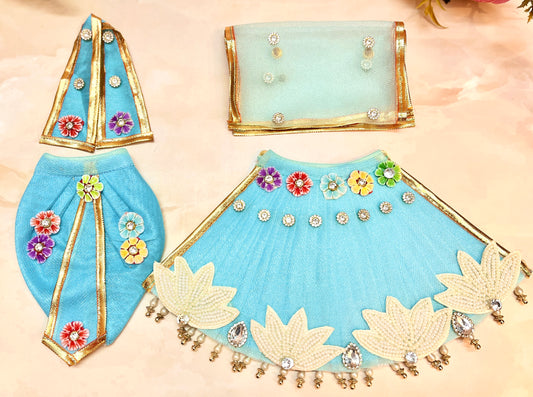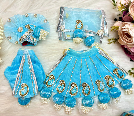 RK / Yugal Sarkar/ Laxmi ji & Ganesh ji Set Skyblue Lehenga & Dhoti - 7 piece set