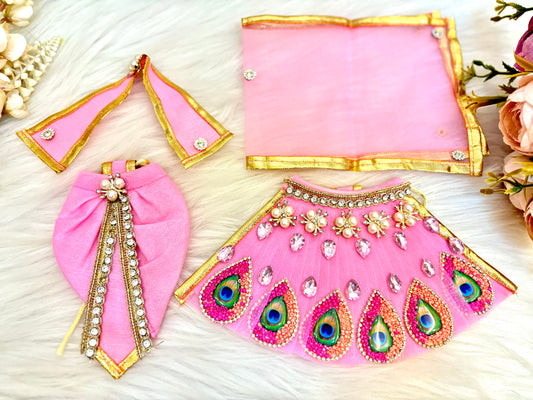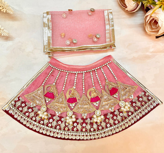 RK / Yugal Sarkar/ Laxmi ji & Ganesh ji Set Pink Rose Lehenga & Dhoti - 7 piece set