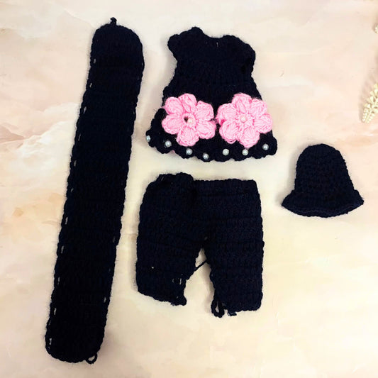 Bottle Green Woollen Radhe Krishna Dress (7 piece set)