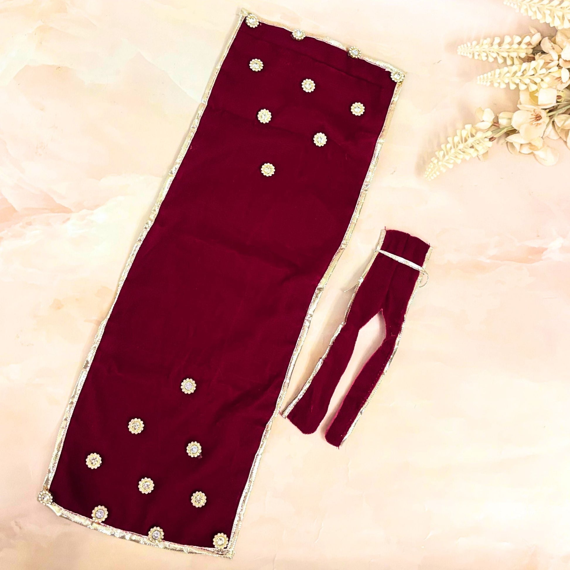 Divyarasa Radha Krishna Dress Set is the perfect embodiment of divine beauty and royal devotion – handcrafted in deep maroon velvet with elegant diamond motifs, lotus embroidery, and premium pearl tassels. This winter-special matching pair radiates both elegance and spiritual richness in every thread.