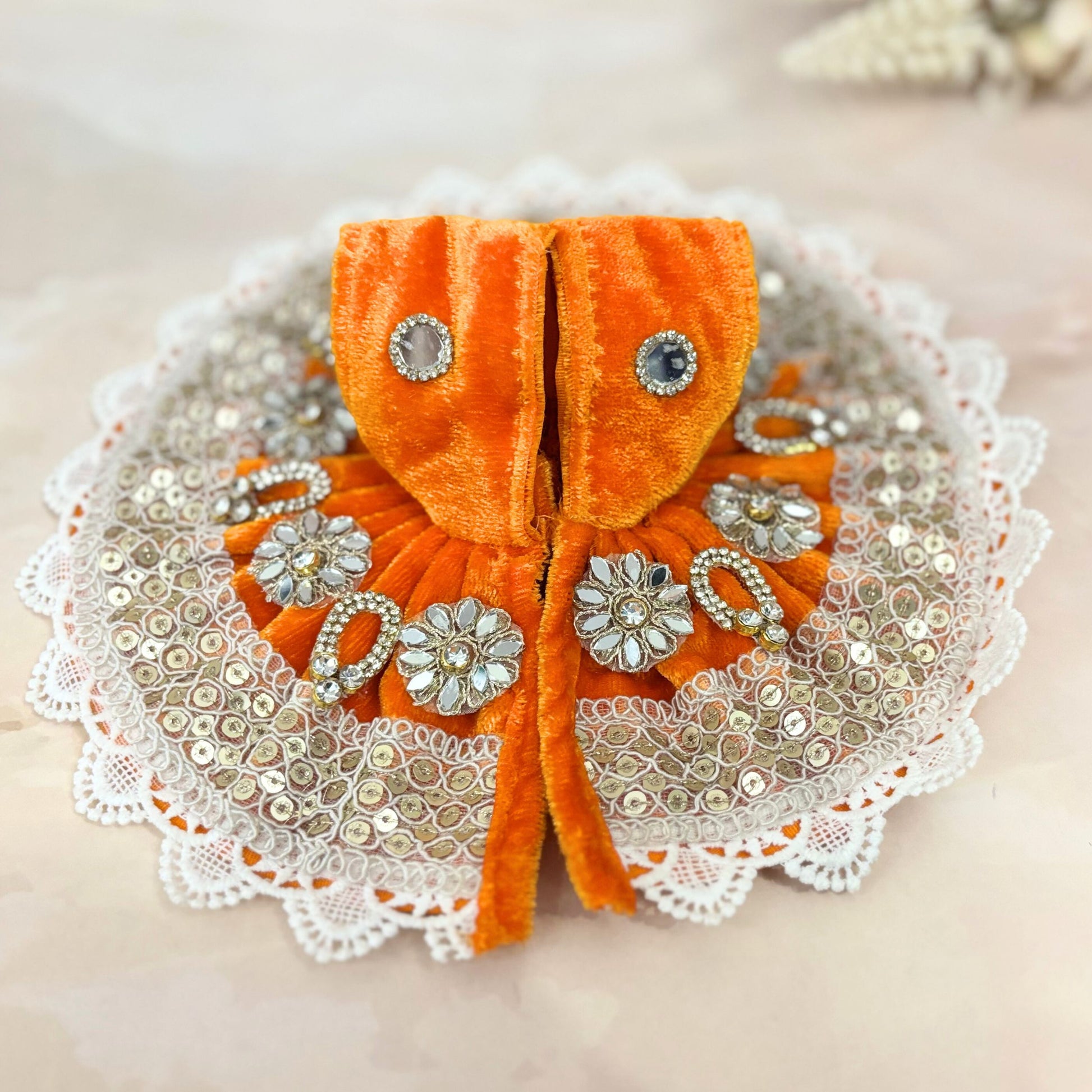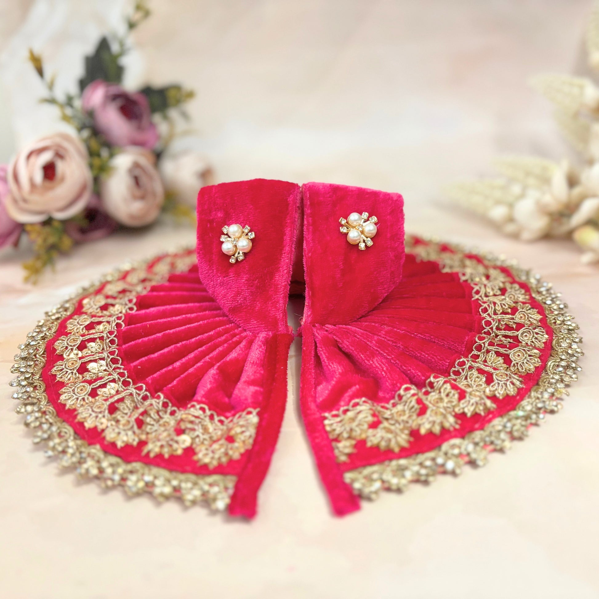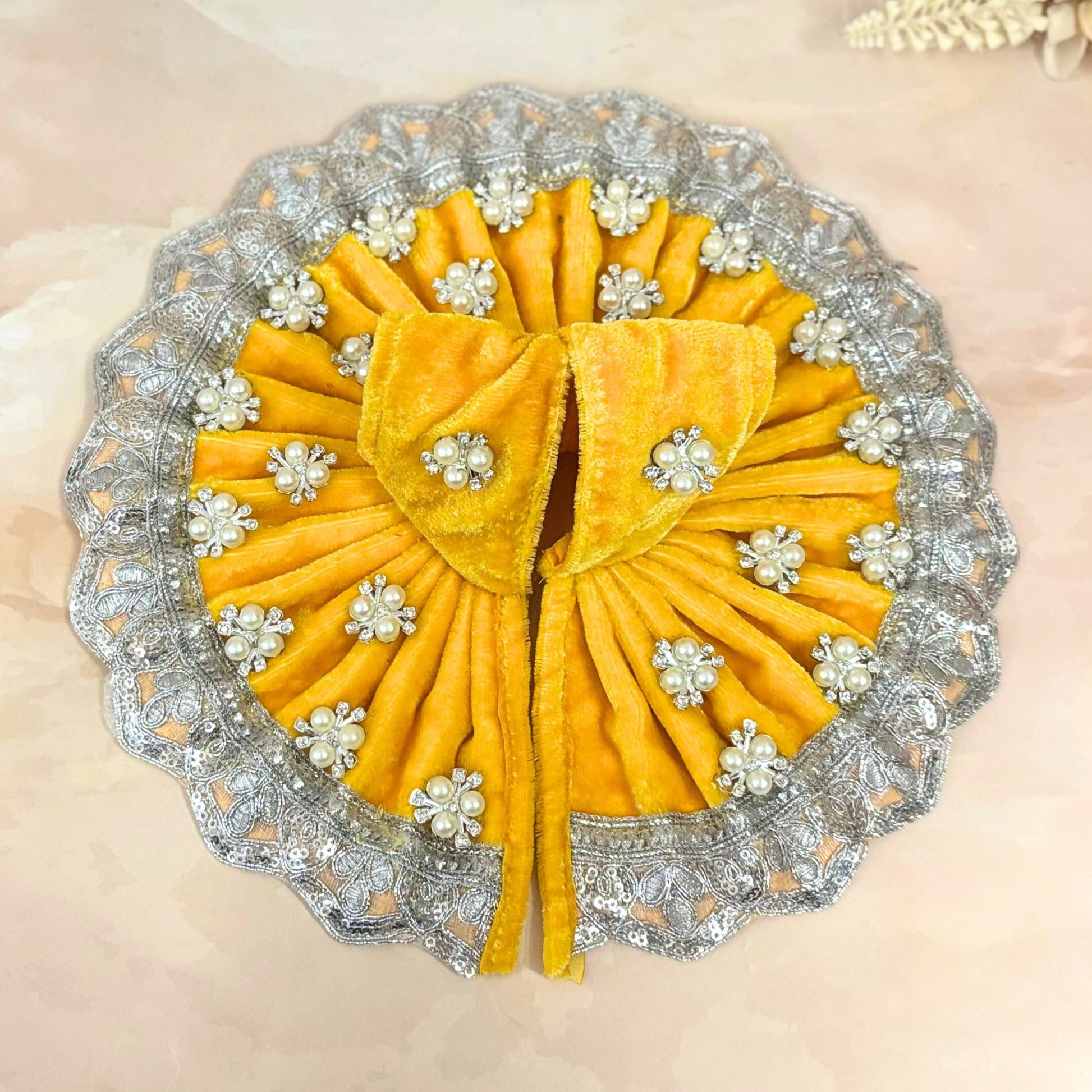 Adorn your beloved Laddu Gopal Ji in royal elegance with Devastram’s Kanakpriya Velvet Dress Combo – a luxurious set of four handcrafted velvet outfits, inspired by the golden glow of prosperity and divine grace.