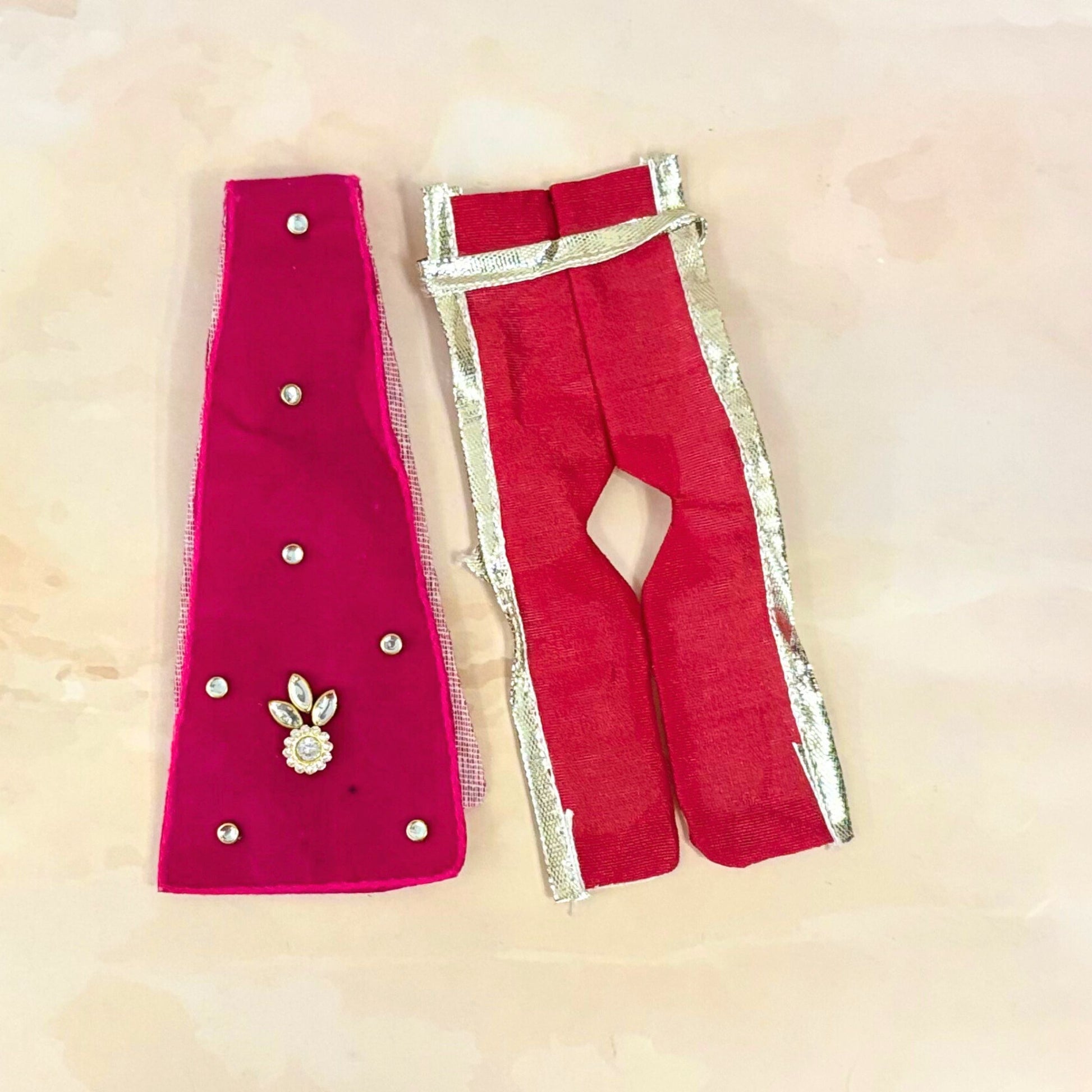 Grace your divine Laddu Gopal Ji in royal elegance with the Manohar Dress — a captivating ensemble in deep magenta velvet, adorned with kundan stones and floral embroidery. “Manohar” means one who enchants the heart, making this dress an ideal choice for daily shringar or special darshan.