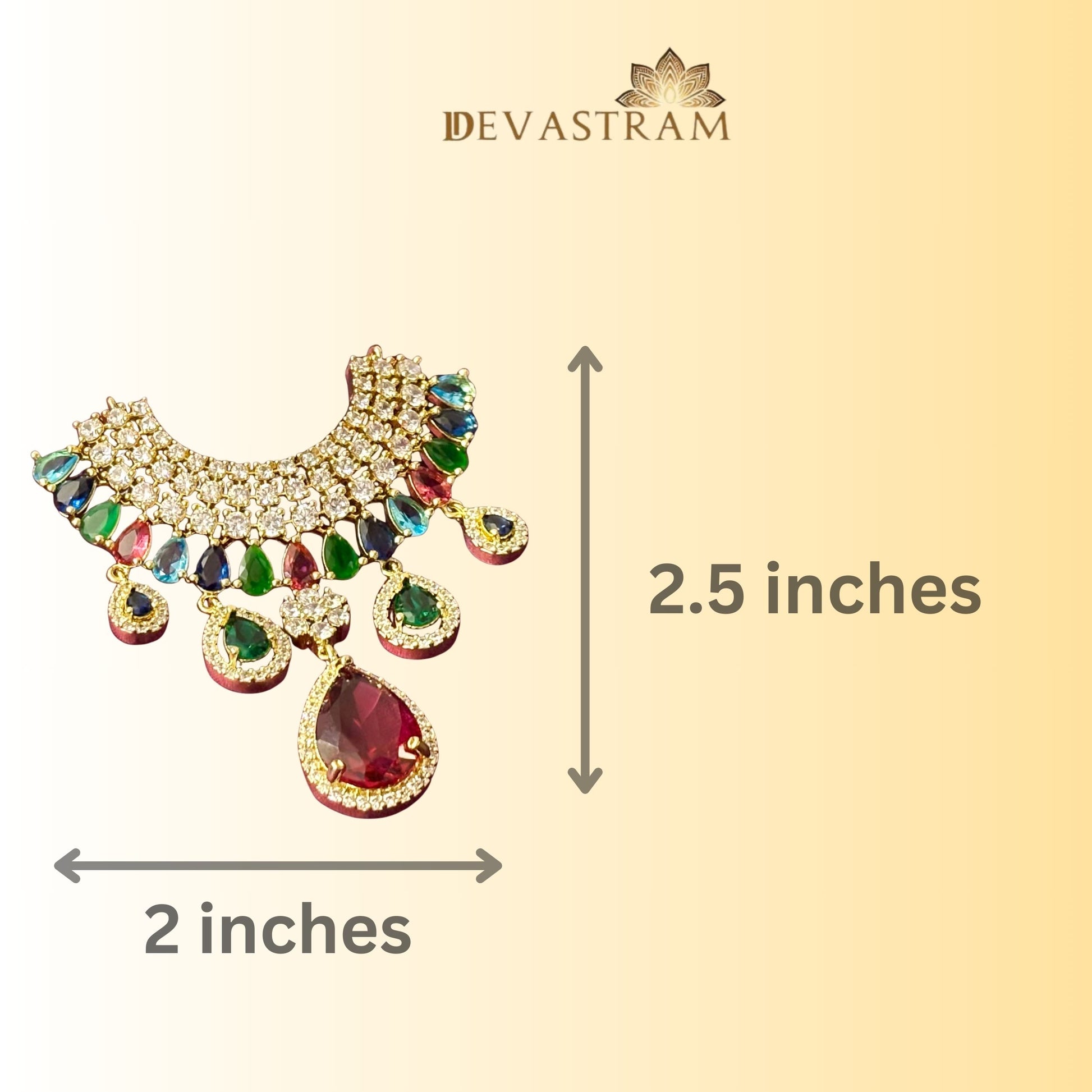 - Elegant mixed gemstone palette including green, blue, ruby, sapphire and emerald tones Handcrafted with Devotion: Each necklace is meticulously crafted by skilled artisans, reflecting traditional craftsmanship and dedication.