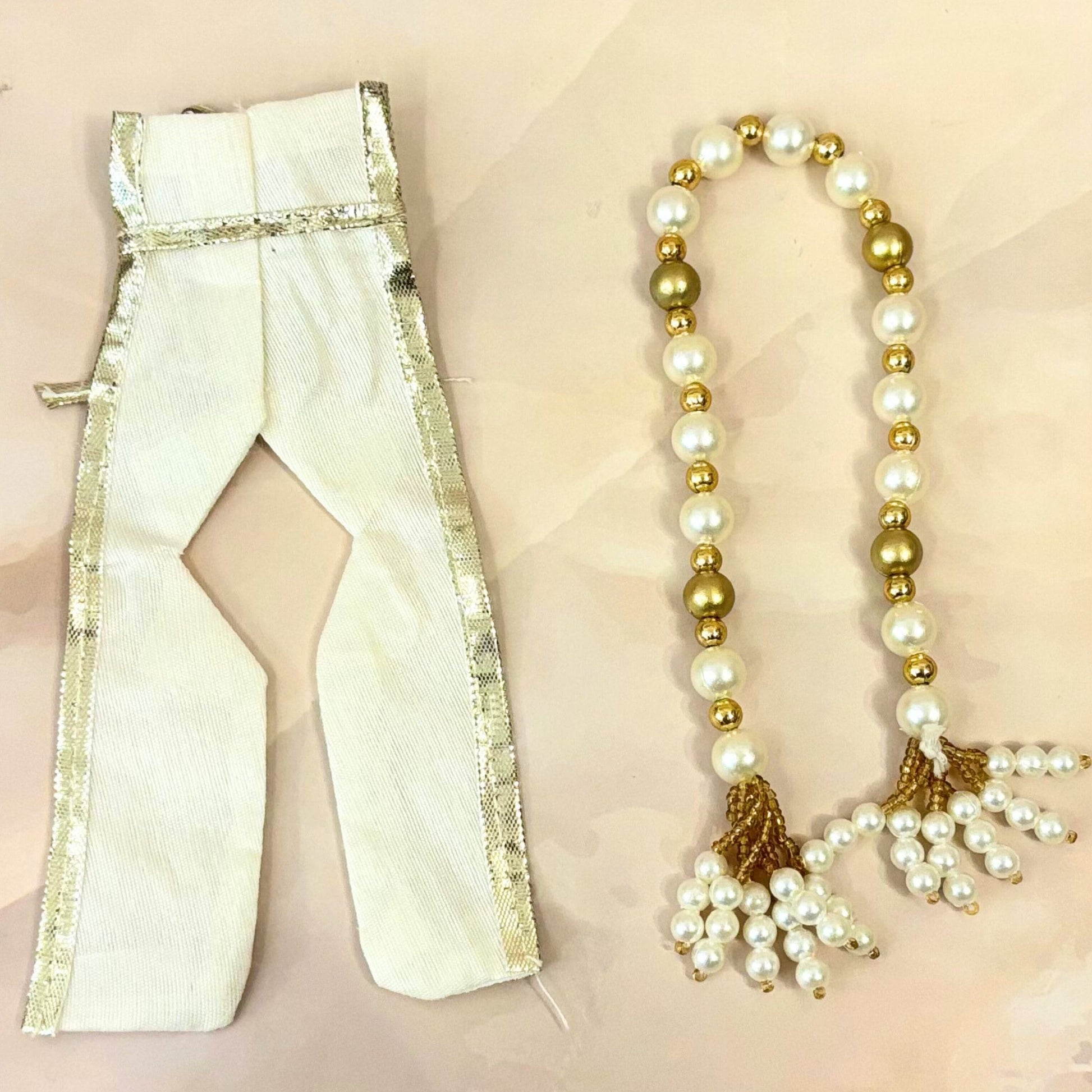 oImmerse your Laddu Gopal in the celestial charm of Shvetārāvinda – a luxurious royal blue and white dress adorned with intricate cone embroidery, pearl detailing, and divine sparkle. Perfect for festive puja and divine celebrations.
