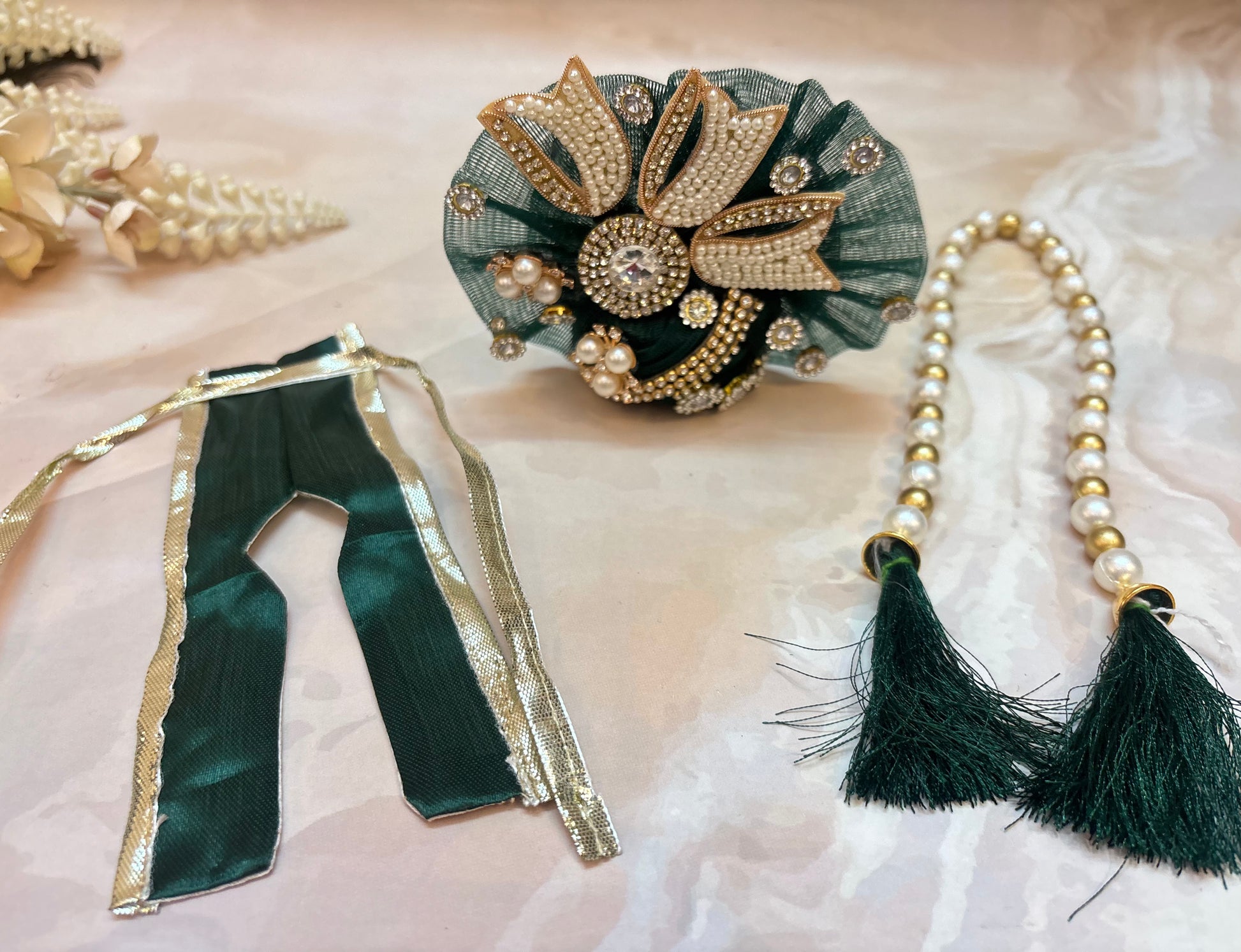 Teej Special Bottle Green Laddu Gopal Dress (4 piece set)